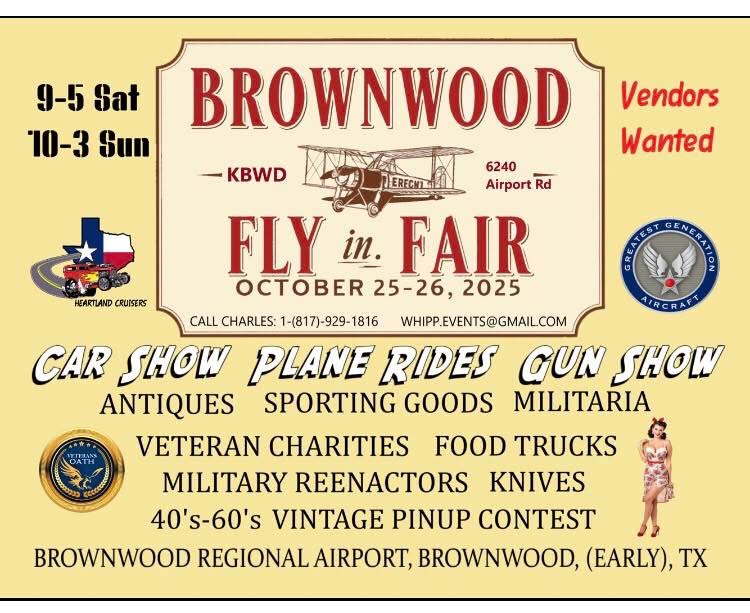 Home News Brownwood airport to host fly-in fair Brownwood airport to host fly-in fairOctober 17, 2025News The skies over Central Texas will come alive again as Brownwood Regional Airport hosts the third annual fly-in fair set to land on October 25-26.… Login to continue reading Login Sign up for complimentary access Sign Up Now Close Previous Post Riley builds on EMT success in TSTC’s Paramedic program Next Post Brownwood Experimental Aircraft Association sets Young Eagles event Featured Local Savings -