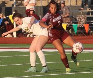 Brownwood's Robbie Robinson (sliding) had two hits and two runs batted in Friday in the Lions' 5-4 win over Burleson. (Steve Nash / Brownwood Bulletin).