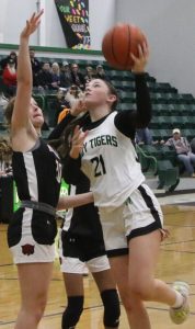 The Goldthwaite Lady Eagles' basketball team celebrates its 42-22 win over Port Aransas in the Class 2A Division II area round on Thursday in Seguin. (Contributed photo).