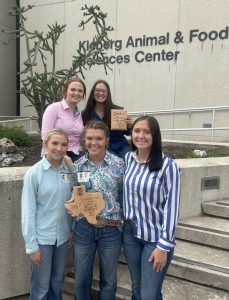The May boys and their coaches celebrate their fourth-place finish at the Class 1A state golf tournament on Tuesday in Leander. (Contributed photo).